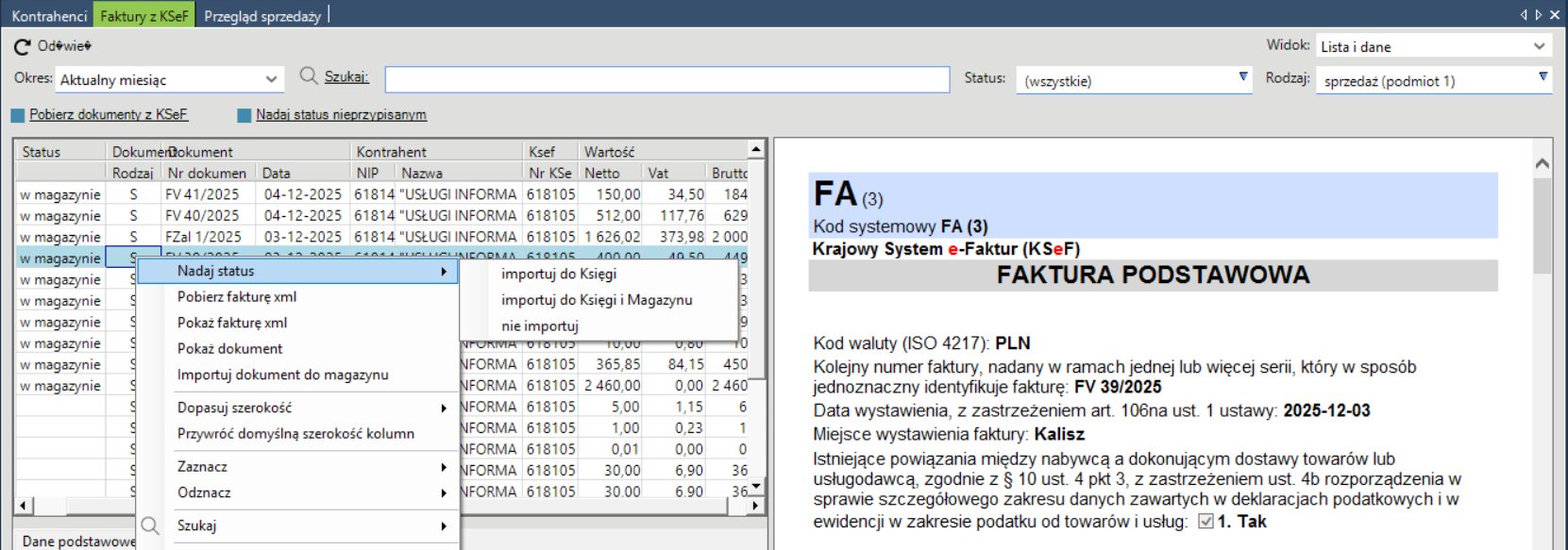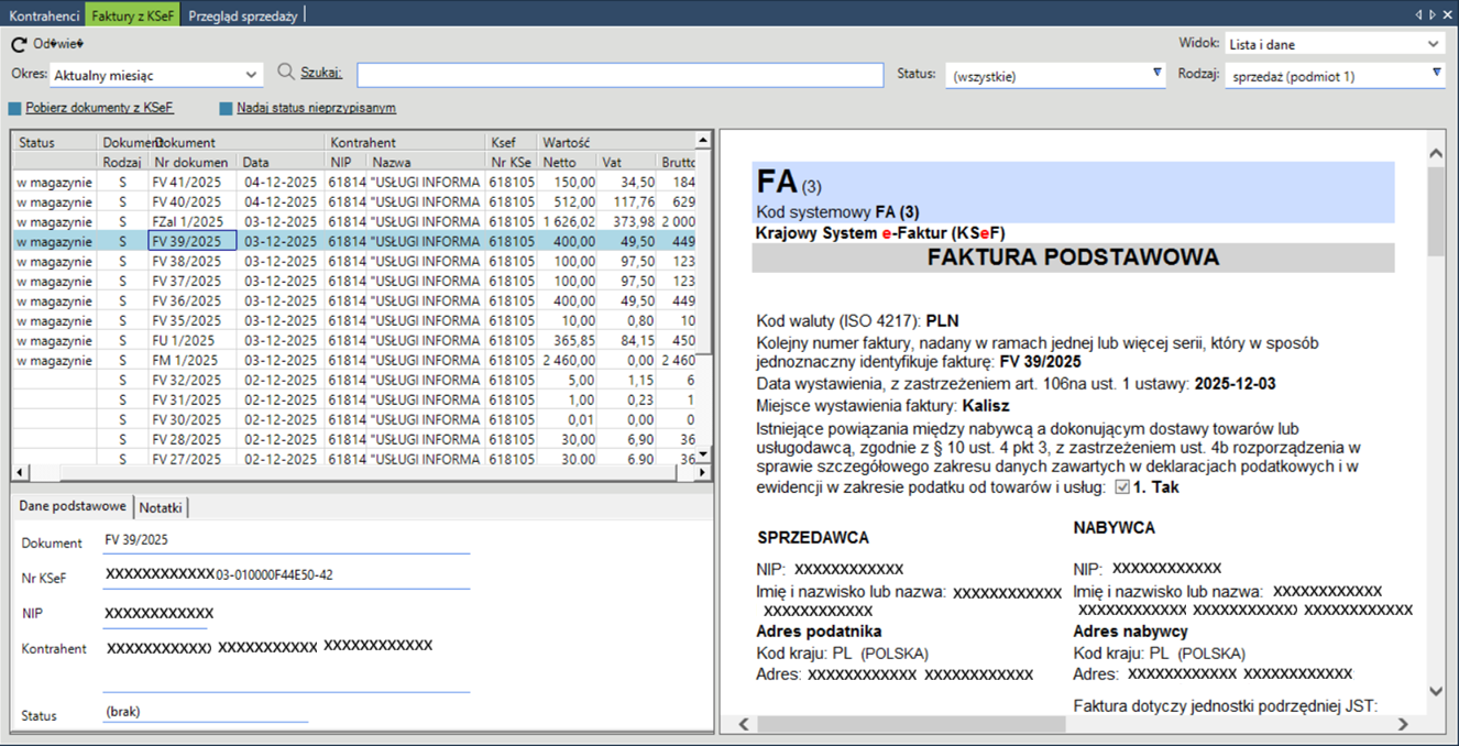 3. Zarządzanie fakturami pobranymi z KSeF